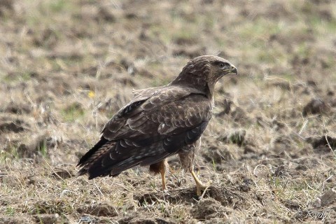 Vaak zie je op één van de kassen een buizerd zitten. Dat was vandaag ook het geval. Maar vandaag kregen we hem mooi voor de lens.