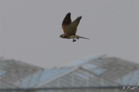 Terwijl mams zich met haar grut verstopt onder een bruggetje, zien we iets over ons heen vliegen. Snel de camera richten en schieten maar. Daar ging een torenvalk.