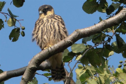 Ondanks dat de zon het vandaag behoorlijk liet afweten en de regen op de loer lag, wou Rob toch graag nog even bij de boomvalken kijken. Dus is hij snel even alleen gaan kijken.