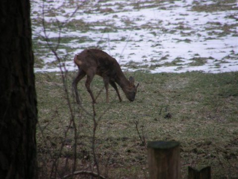 Toch werden we op weg naar de uitgang nog even verrast door een reetje dat heerlijk in het bos stond te grazen.