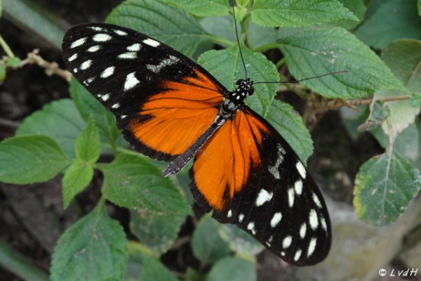 Daarna kwamen we in de Vlindertuin. Er vliegen echt prachtige exemplaren rond! Het zijn allemaal vlinders uit tropische streken, je komt er dus geen bekende vlinders tegen. We weten helaas geen namen van deze prachtige beestjes.