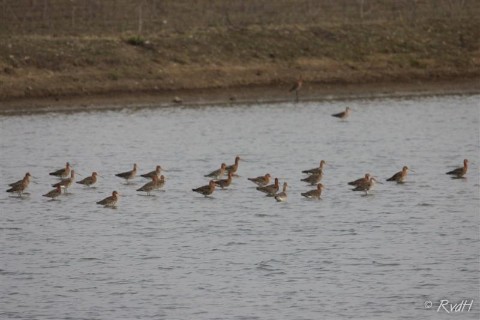 Een eindje verderop zat deze groep grutto’s gezellig bij elkaar.