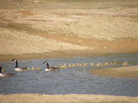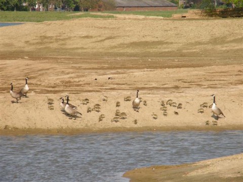 Bij de “boerderij” waar we de vorige keer naar de vogeltjes op het hekje hebben zitten kijken, hebben we nu zitten genieten van de Canadese ganzen. Het was “one big happy family”. Een stuk of 10 oudervogels met wel 33 kuikens.