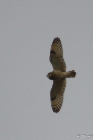 Vanmorgen is Rob even alleen naar Bergerden geweest. Ik heb nog nooit zo’n spijt gehad dat ik niet mee ben gegaan. Hij had namelijk de ervaring van zijn leven! Hij zag boven zijn hoofd een Torenvalkje een andere vogel opjagen. In eerste instantie dacht hij aan een Buizerd. Maar toen hij wat beter keek, kon hij geen “kop” ontdekken. Dus nog beter kijken… het was geen Buizerd maar een Velduil! Jeetje, dat kan je echt bijzonder noemen! Velduilen komen hier niet veel voor. Om niet te zeggen: ze komen hier bijna niet voor. Gelukkig heeft Rob het allemaal mooi vast kunnen leggen.